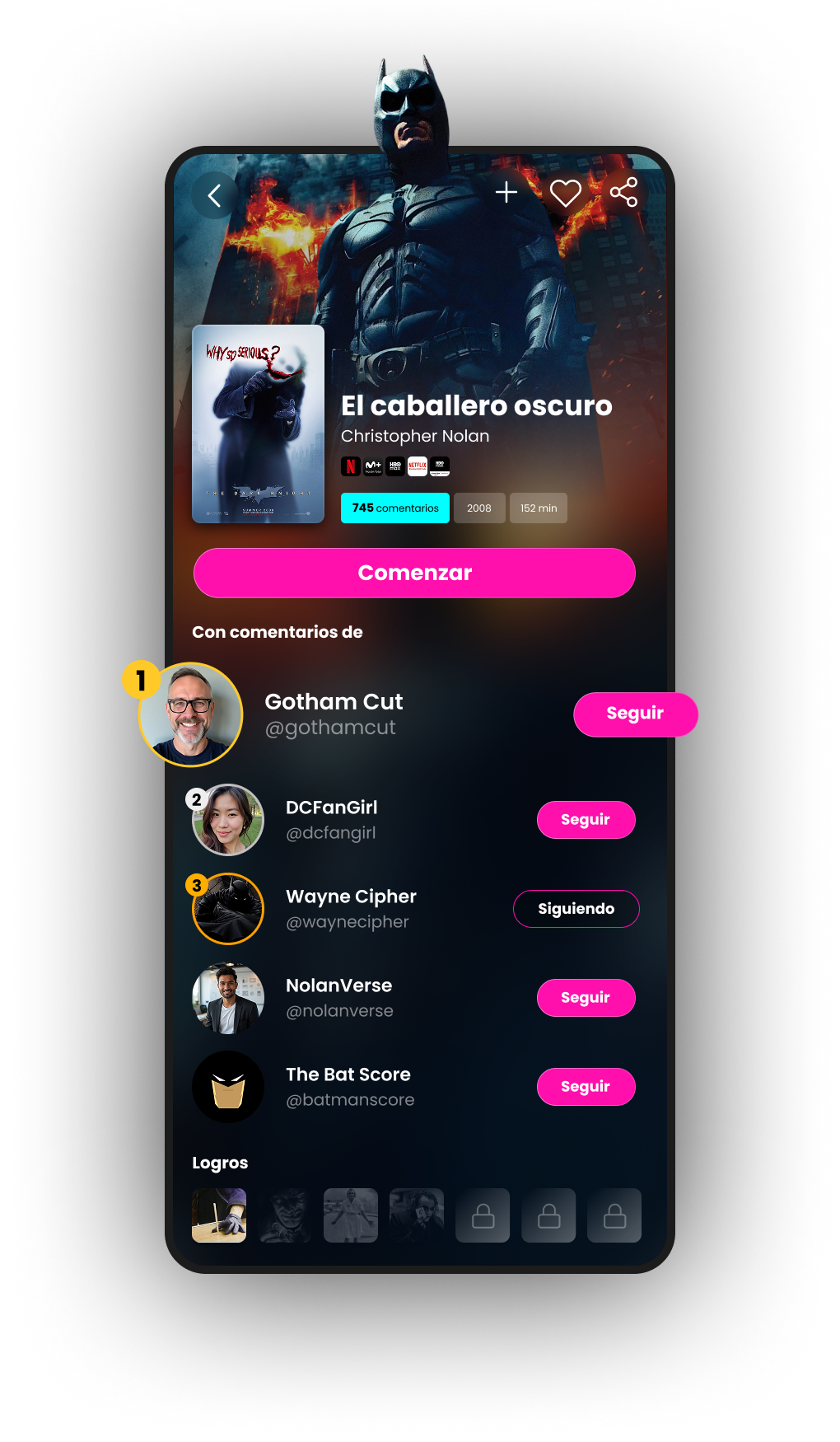 - 🎬 Nuevo desafío: "Comenta esta escena" donde se elige cada cierto tiempo una escena mítica de una película/serie para que los usuarios comenten sobre ella.